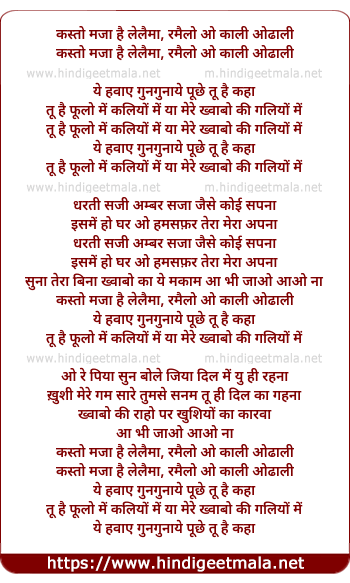 Lyrics of Kasto Majja Hai Lelaima - कस्तो मजा है लेलैमा