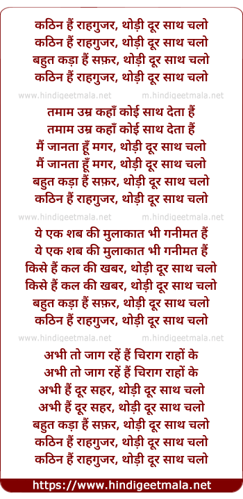 Lyrics of Katheen Hai Rahgujar, Thodee Dur Sath Chalo - कठिन हैं राहगुजर, थोड़ी दूर साथ चलो