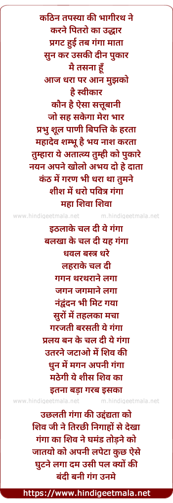 Lyrics of Kathin Tapasya Ki Bhagirath Ne