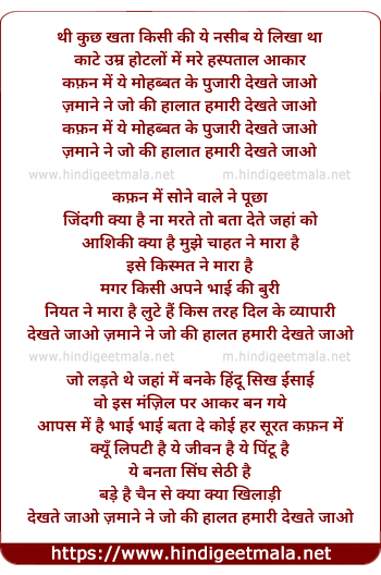 Lyrics of Kati Umar Hotelon Me, Mare Hasptal Aakar - काटे उम्र होटलों में मरे हस्पताल आकर