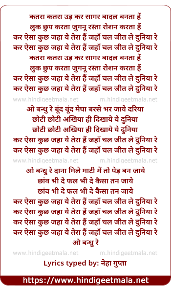 Lyrics of Katra Katra Udd Kar Saagar - कतरा कतरा उड़ कर सागर