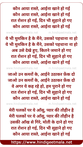 Lyrics of Kaun Aaya Raste Aaina Khane Ho Gaye - कौन आया रास्ते, आईना खाने हो गई