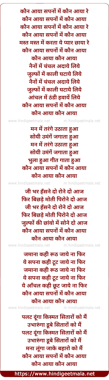 Lyrics of Kaun Aaya Sapano Me Kaun Aaya Re - कौन आया सपनों में कौन आया रे