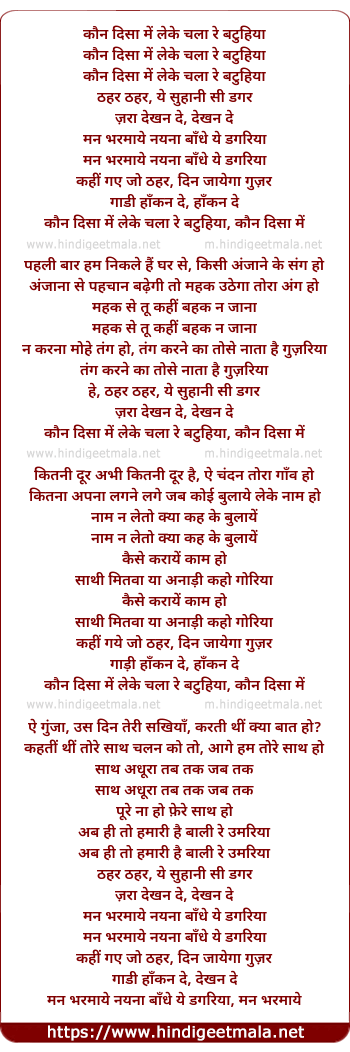 Lyrics of Kaun Disha Mein Leke Chala Re Batohiya - कौन दिसा में लेके चला रे बटुहिया