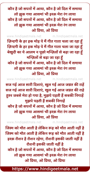 Lyrics of Kaun Hai Jo Sapanon Men Aayaa, Kaun Hai Jo Dil Men Samaayaa - कौन है जो सपनों में आया, कौन है जो दिल में समाया