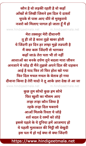 Lyrics of Kaun Hai Woh Ladki - कौन है वो लड़की रहती है वो कहाँ