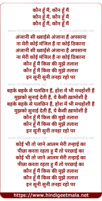 Lyrics of Kaun Hoon Mai (Dance Mix) - कौन हूँ मैं, कौन हूँ मैं