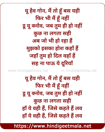 you have gone, main to hu bas yahi