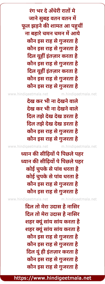 Lyrics of Kaun Is Raah Se Guzarta Hain - रंग भर दे अँधेरी रातों मे