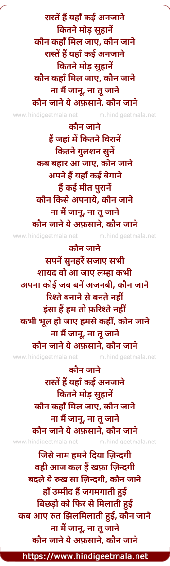 Lyrics of Kaun Jaane - रास्तें हैं यहाँ कई अनजाने