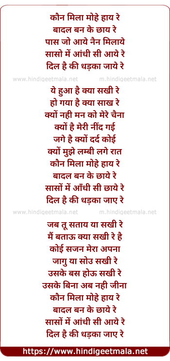 Lyrics of Kaun Mila Mohe - कौन मिला मोहे