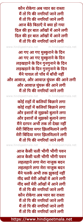 Lyrics of Kaun Rokega Ab Pyar Ka Rasta - कौन रोकेगा अब प्यार का रास्ता