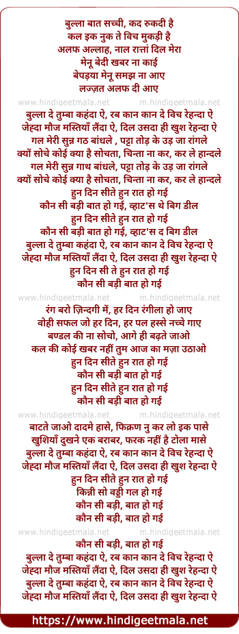 bulle de tumba kehnda ae, rab kan kan de vich rehnda ae
