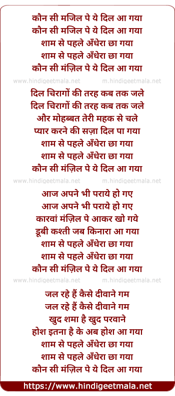 Lyrics of Kaun Si Manzil Pe Yeh Dil Aa Gaya - कौन सी मजिल पे ये दिल आ गया