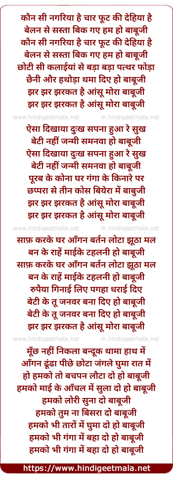 Lyrics of Kaun Si Nagariya - कौन सी नगरिया
