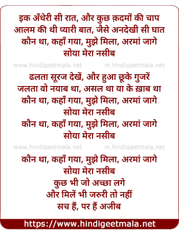 Lyrics of Kaun Tha, Kaha Gaya - इक अँधेरी सी रात, और कुछ क़दमों की चाप