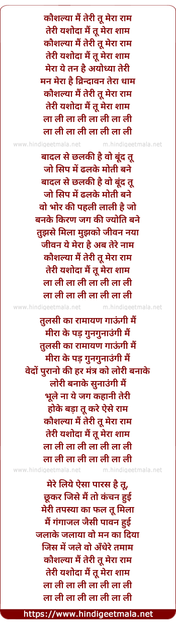 kaushalya main teri tu mera raam, teri yashoda main tu mera shaam