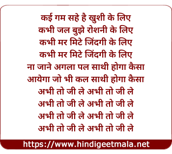 Lyrics of Kayi Gham Sahe Hai Khushi Ke Liye - कई गम सहे है खुशी के लिये