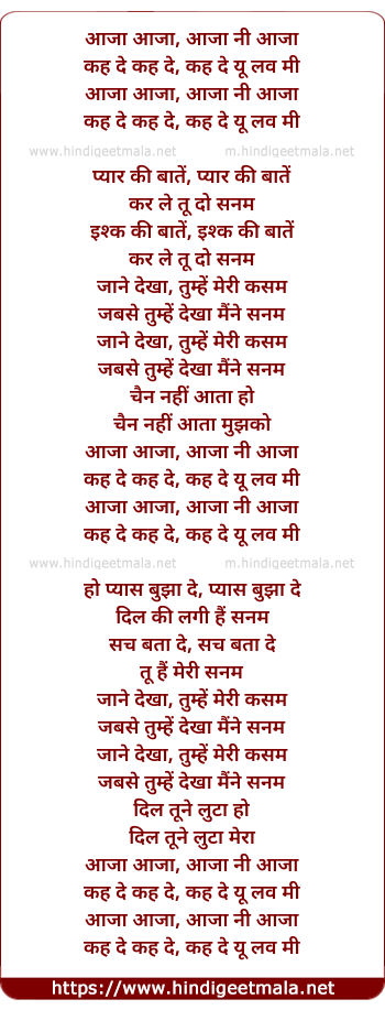 Lyrics of Keh De You Love Me - आजा आजा, आजा नी आजा