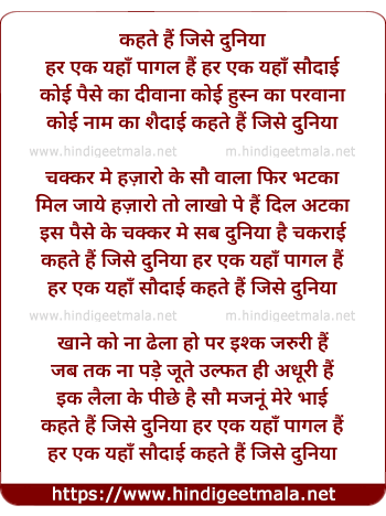 Lyrics of Kehte Hai Jise Duniya - कहते हैं जिसे दुनिया