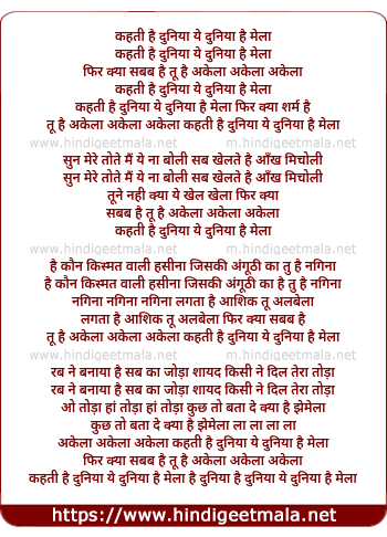 kahti hai dunia ye dunia hai mela kahti hai dunia ye dunia hai mela