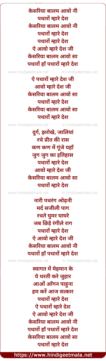 Lyrics of Kesaria (Version 2) - केसरिया बालम आवो नी