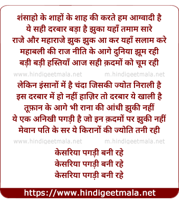 Lyrics of Kesariya Pagadi Bani Rahe - केसरिया पगड़ी बनी रहे