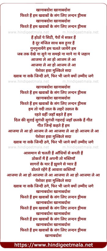 Lyrics of Khaanabadosh Khaanabadosh - खानाबदोश खानाबदोश