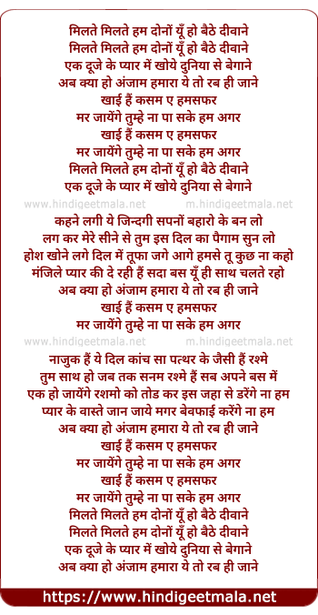 milte milte hum dono yu ho baithe diwane