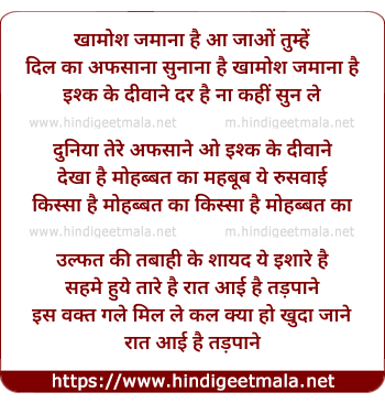 Lyrics of Khamosh Zamana Hai - खामोश जमाना है