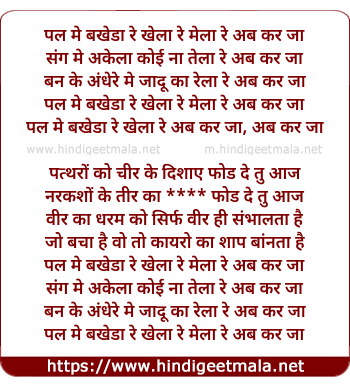 pal me bakheda re khela re ab kar ja, ab kar ja