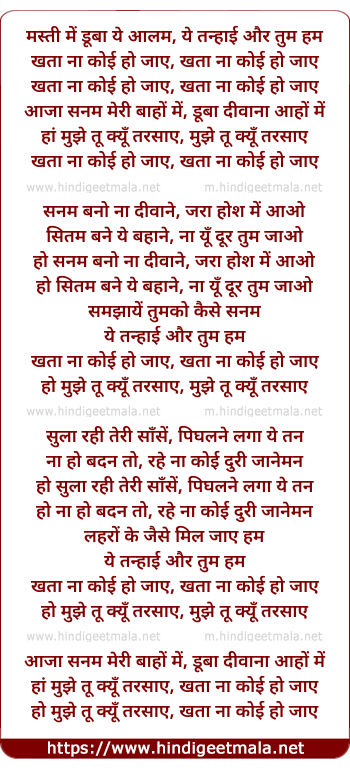 Lyrics of Khataa Na Koi Ho Jaaye - मस्ती में डूबा ये आलम, ये तन्हाई और तुम हम