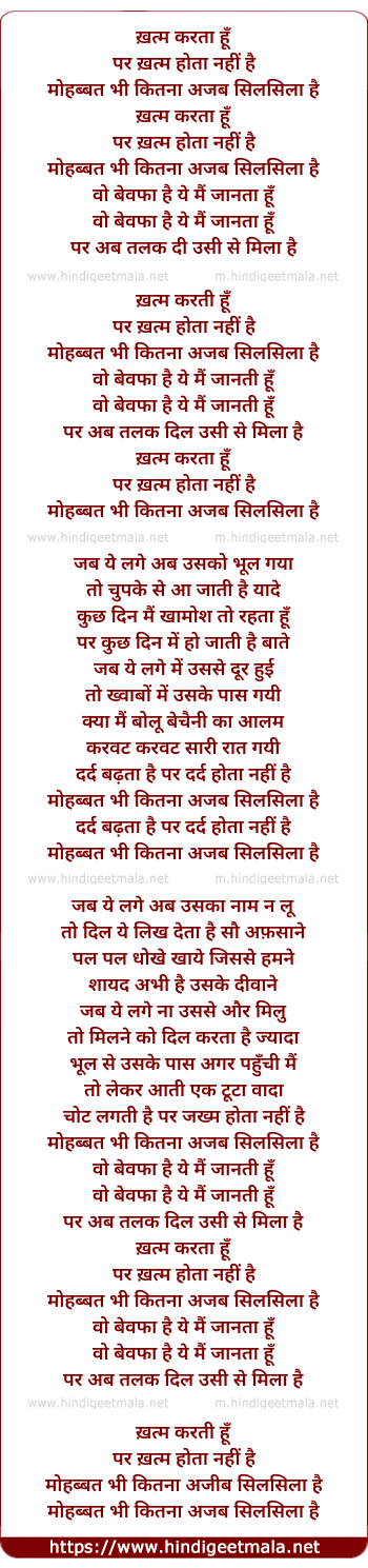 Lyrics of Khatam Karta Hu Par Khatam Hota Nahi - ख़त्म करता हूँ