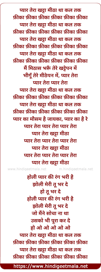 Lyrics of Khatta Meetha - प्यार तेरा खट्टा मीठा था कल तक