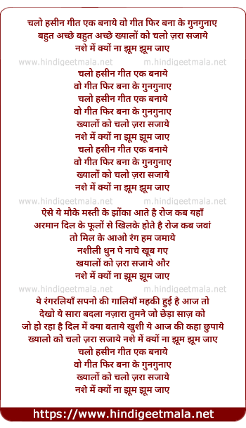 Lyrics of Chalo Hasin Geet Ek Banaye, Khayalo Ko Jara Sajaye - चलो हसीन गीत एक बनाये, ख्यालों को जरा सजाये