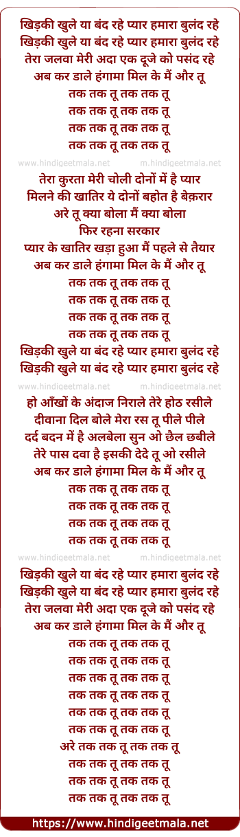 khidki khuli ya band rahe pyar hamara buland rahe