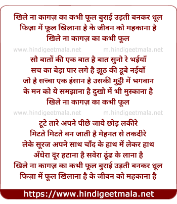 Lyrics of Khile Na Kagaz Ka Kabhi Phool - खिले ना कागज़ का कभी फूल