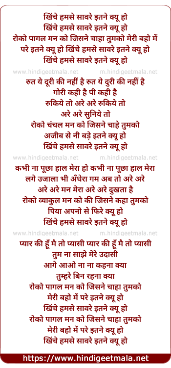 Lyrics of Khinche Humse Sanware - खिंचे हमसे सांवरे