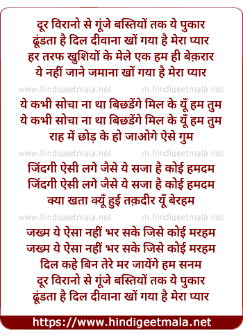 Lyrics of Kho Gaya Hai Mera Pyar - खो गया है मेरा प्यार