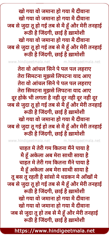 Lyrics of Kho Gaya Wo Jamana Ho Gaya Mai Diwana - खो गया वो जमाना हो गया मैं दीवाना