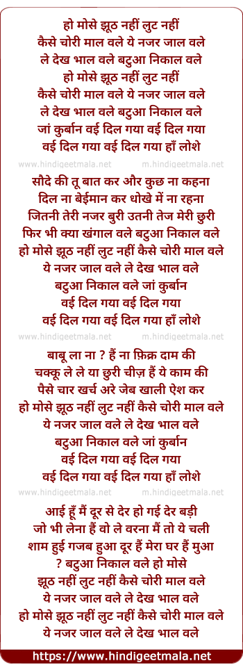 Lyrics of Khoche Jhoot Nahi - हो मोसे झूठ नहीं लुट नहीं