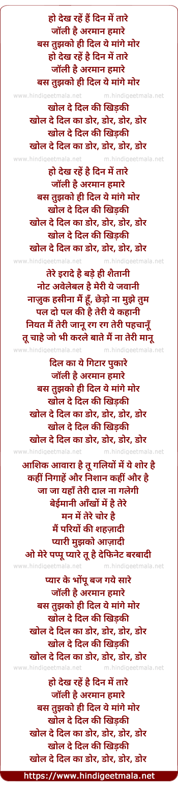Lyrics of Khol De Dil Ki Khidki - खोल दे दिल की खिड़की