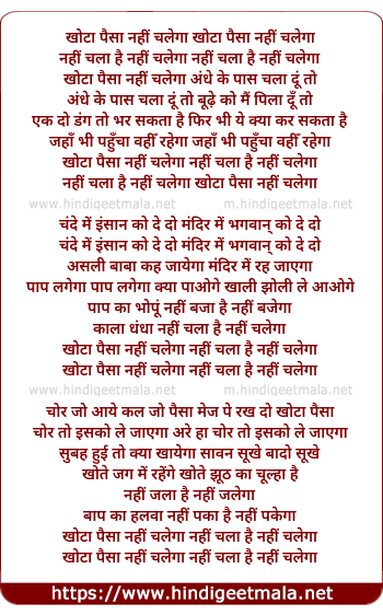 Lyrics of Khota Paisa Nahi Chalega - खोटा पैसा नहीं चलेगा