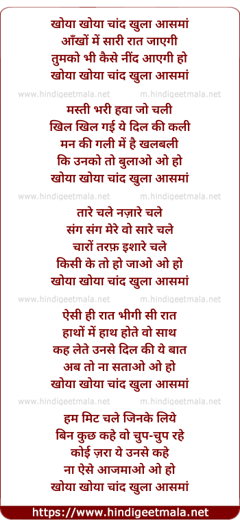 Lyrics of Khoya Khoya Chaand - खोया खोया चांद