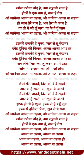 Lyrics of Khoya Khoya Chaand Hai Kya Suhani Sham Hai - खोया खोया चांद है, क्या सुहानी शाम है