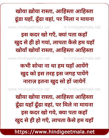 Lyrics of Khoya Khoya Raasta - खोया खोया रास्ता