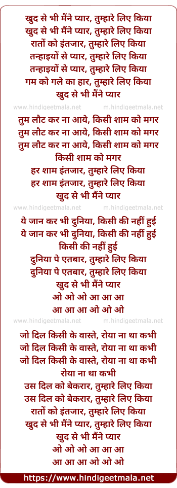 Lyrics of Khud Se Bhi Maine Pyaar - खुद से भी मैंने प्यार, तुम्हारे लिए किया