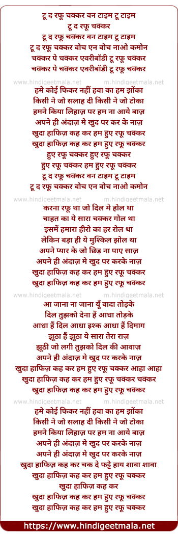 Lyrics of Khuda Hafiz Hum Hue Raffu Chakkar - खुदा हाफिज हम हुए रफू चक्कर
