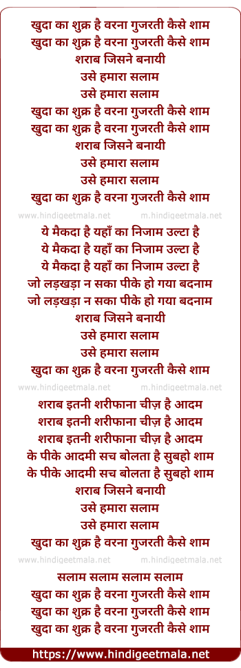 Lyrics of Khuda Ka Shukra Hai - खुदा का शुक्र है वरना गुजरती कैसे शाम