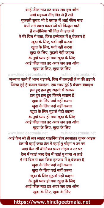 Lyrics of Khuda Ke Liye Parda Nahin Karna - खुदा के लिये पर्दा नहीं करना